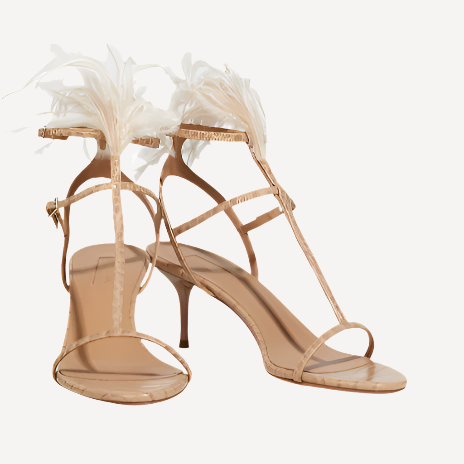 Aquazzura Ponza Sandal Flat Printed Crocco Feathers Dark Nude